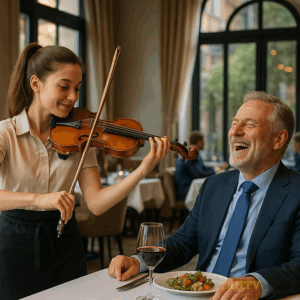 Waitress asks to play for a tip. Billionaire laughs unaware. She’s a violin prodigy. What if one moment of kindness could change two…