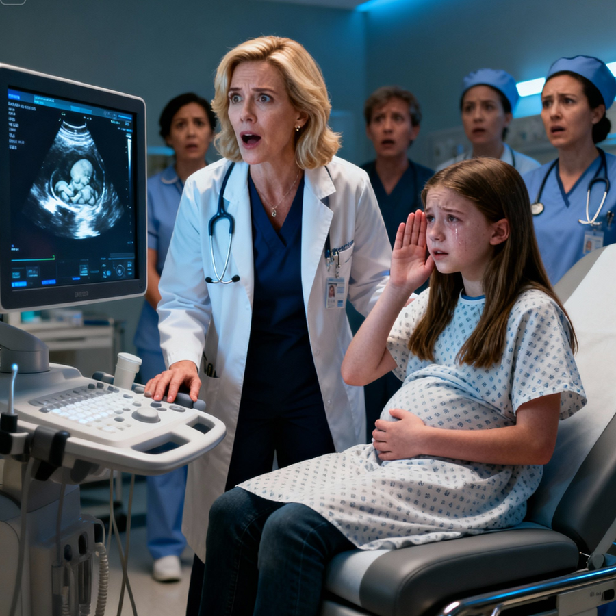The sliding doors of the emergency room burst open as a petite 13-year-old girl stumbled in, her face pale, clutching her stomach. The nurses rushed toward her. “Sweetheart, what’s wrong?” one asked gently. The girl hesitated, her eyes darting nervously toward the floor. “I… I think I’m having stomach pains,” she whispered.