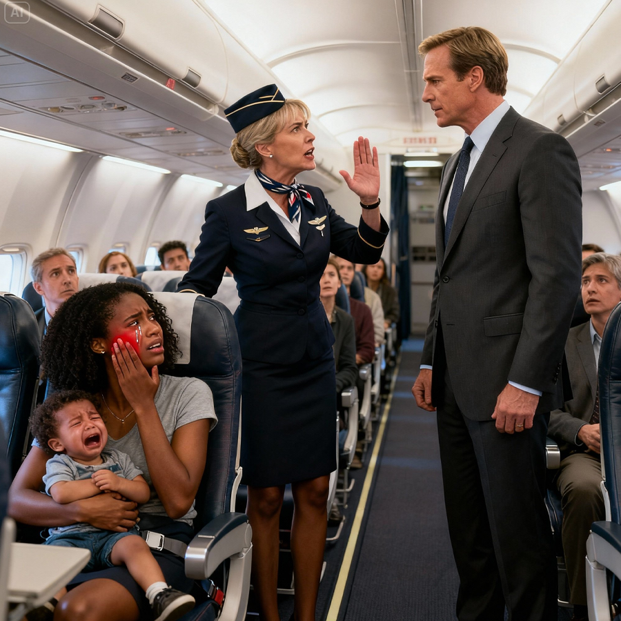 Karen’s face flushed. The captain, alerted by the commotion, appeared from the cockpit. He took one look at Angela’s tear-streaked face and the silent, furious man standing before the crew and asked, “What happened here?”