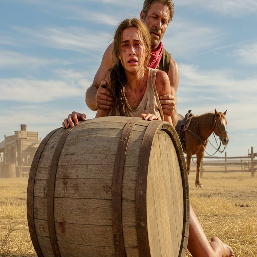 She collapsed just outside the gate, arms wrapped around the one thing she grabbed before running. A wooden crate, heavy, rough, stained. She didn’t remember picking it up, but now she held it like a lifeline. Luke was hammering iron when he heard the crash. He dropped the tongs, turned, froze. Emma Darnell was on her knees in the dirt, dressed torn, blood on her cheek, hair like straw soaked in sweat, arms locked around a crate like it was her child. He ran to her.