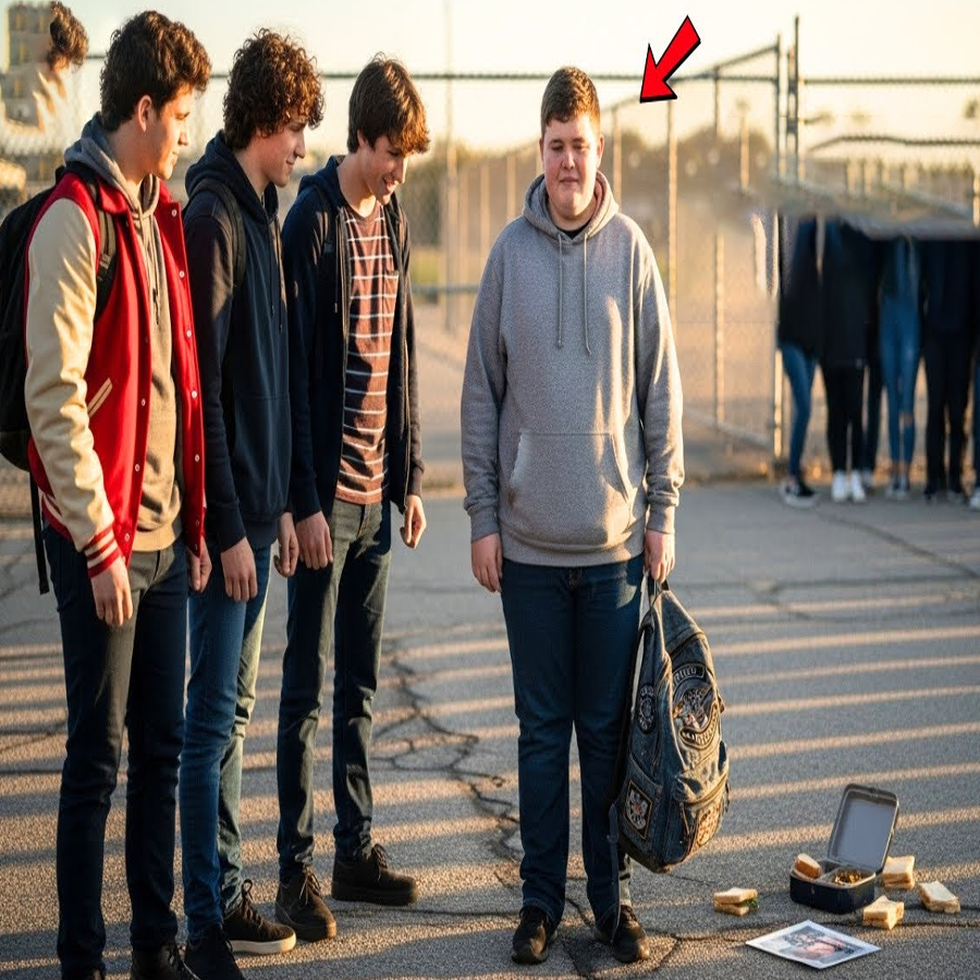 That morning, the bullies shoved him against the fence. their voices dripping with cruel delight. Look at this walking meatball. One sneered. Another kicked his lunchbox across the asphalt. It burst open. Homemade sandwiches and a photo of Ethan with a tall bearded biker fell out.