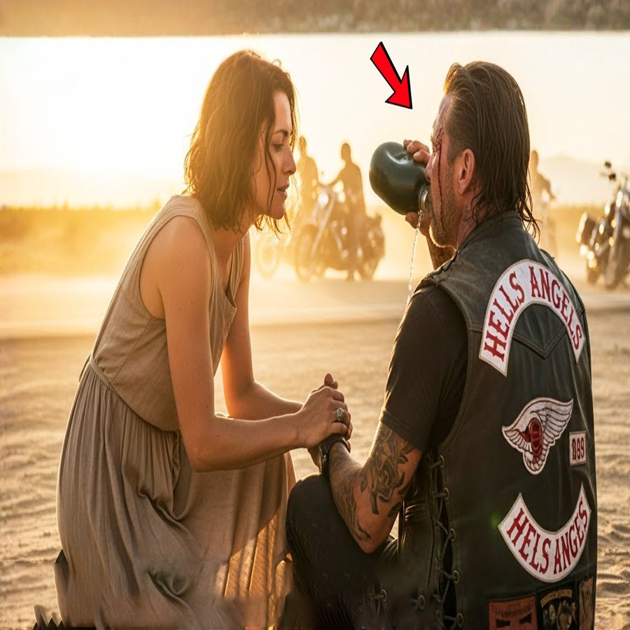 ” Ember smiled. “That’s all a road needs sometimes.” From the ridge, a lone biker lifted a flare and fired it high. The red light spread over the flats like dawn in reverse. The angels revved their engines once, a salute, not to war, not to victory, but to the woman who had offered water when the world offered nothing.