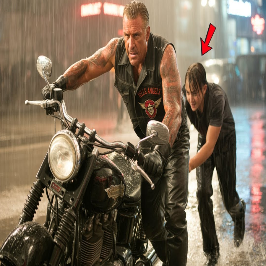 But patches don’t matter when. You’re stranded in a storm that shows no mercy to anyone, regardless of what colors they wear. You need help pushing it? Marcus calls out, his voice barely audible above the rains assault on metal and concrete. And when the man looks up, his eyes are the color of winter storms, weathered and hard, but carrying something that looks almost like surprise, as if kindness from strangers has become rarer than he ever expected it to be.